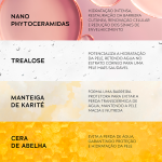 Hidratação intensa, restauração da barreira cutânea, renovação celular e redução dos sinais de envelhecimento.